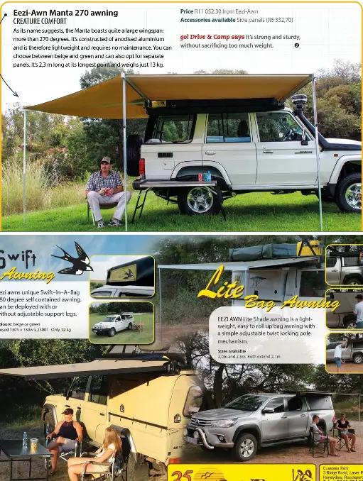Eezi awns dedication for exceptional service is evident in all the equipment we produce sell locally and export to many countries around the world. Our awnings range is the largest in southern africa we offer the very best in quality in pull out awnings 270 degree awnings and bag awnings. The eezi awn manta 270 awning is an innovative design that takes the design of the bat 270 awning one step further creating a larger 270 degree footprint of free standing coverage to the back and side of your vehicle. Since its inception in 1983 the name eezi awn has long been synonymous with quality rooftents rooftop tents retractable camping awnings fridge sliders roof racks and roof rack accessories.
